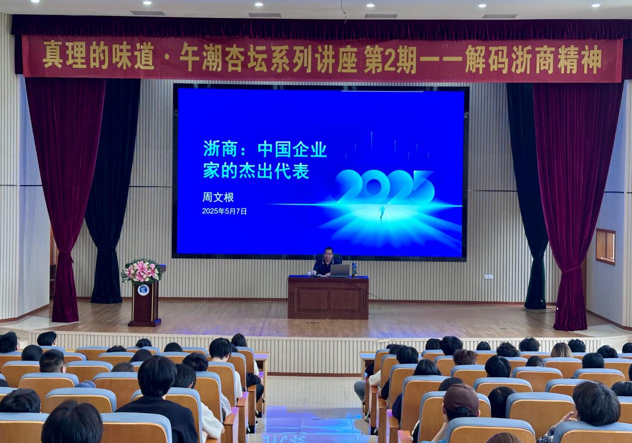 5月7日,由学生处、校团委以及图书馆主办的“真理的味道·午潮杏坛系列讲座”第2期,在二号报告厅成功举办。本次讲座特邀产业经济学二级教授周文根,引领大家深度剖析浙商四十年来的创业密码,探寻他们“敢为天下先”的创新精神与抱团奋进的合作智慧。