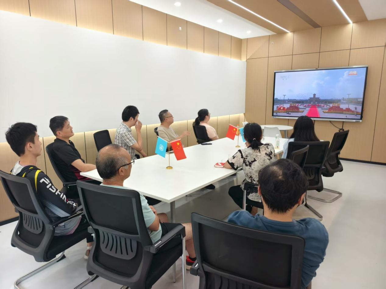 在暑期干部学习班现场,学校中层干部集中观看了大会。上午9时整,随着雄壮的国歌声响起,全体起立齐唱国歌,现场大屏幕同步直播天安门广场升旗仪式。当受阅方阵以铿锵步伐通过天安门时,全场爆发出热烈掌声。学校师生在校内外各地收听收看纪念大会直播,通过各种形式第一时间收听收看纪念大会,开展热烈讨论共同铭记历史、缅怀先烈、珍爱和平、开创未来。