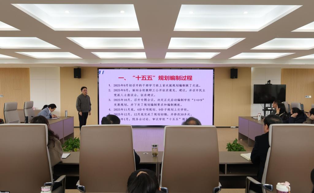 王其军要求全体干部要提高政治站位,深入学习贯彻党的二十届四中全会精神,深刻领会全会关于教育、科技、人才一体化部署的核心要义,切实把思想和行动统一到全会精神和党中央决策部署上来,以全会精神为根本遵循,谋划和推进学校“十五五”期间各项工作,真正做到学深悟透、学以致用、知行合一。各单位要以贯彻落实全会精神为引领,深入学习贯彻全省新春第一会、全省建设更高水平平安浙江工作会议和教育部深入落实“健康第一”工作部署会精神,切实把“健康第一”理念、平安建设要求融入校园管理各环节,筑牢校园安全防线,为学校高质量发展保驾护航。各二级学院要紧扣全会关于职业教育高质量发展的部署要求,主动顺应人工智能时代发展大势,聚焦内涵建设,深耕专业特色,不断提升办学竞争力与人才培养质量,切实把全会部署转化为学科专业建设、人才培养的实际行动。