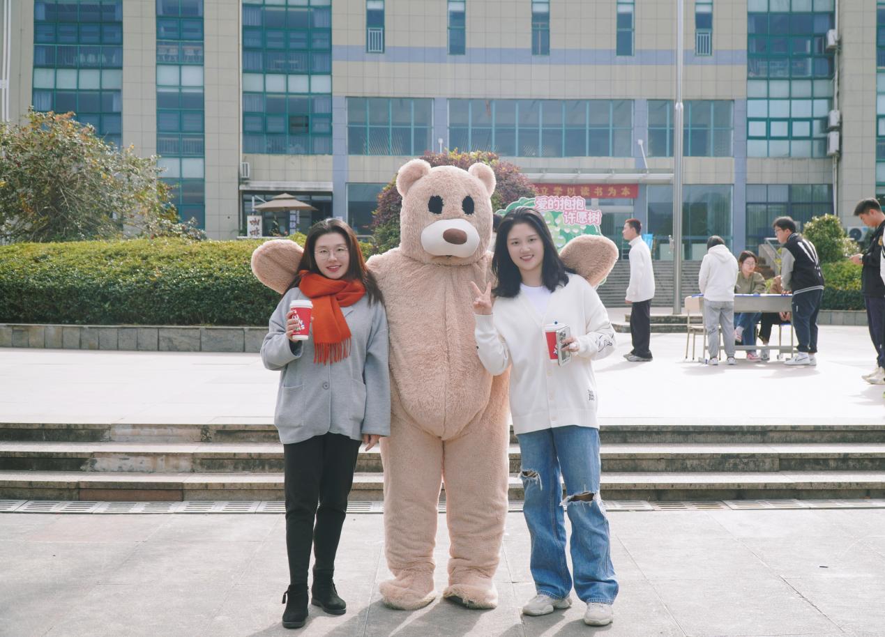 本次活动由“爱的抱抱”“解忧杂货铺”两个环节组成。活动现场形象可爱的卡通人物吸引了路过的师生们,大家纷纷与小熊温暖互动,释放焦虑情绪,并主动在“心愿树”上留下自己对家人和朋友最真挚的祝福、鼓励、感谢,以及对自己的反省或是对未来的期望,帮助被焦虑困扰的同学舒缓忧虑。活动过程丰富有趣,同学们积极参与,现场氛围热情高涨。