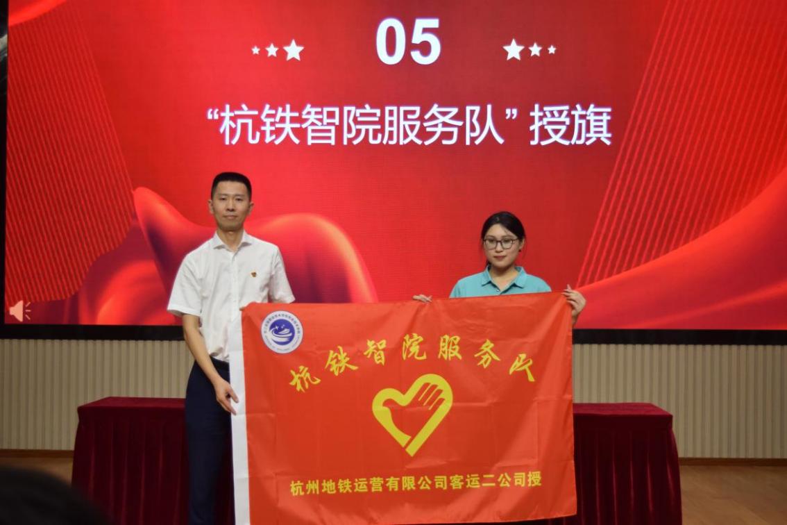 此次党建联建签约与授旗仪式,是智能技术学院与杭州地铁运营有限公司深化产教融合、推动校企协同发展的的重要突破。未来,双方将围绕“地铁课堂”进校园、志愿服务示范站打造、专业人才定向培养等方面持续发力,共同推动杭州城市轨道交通高质量发展。